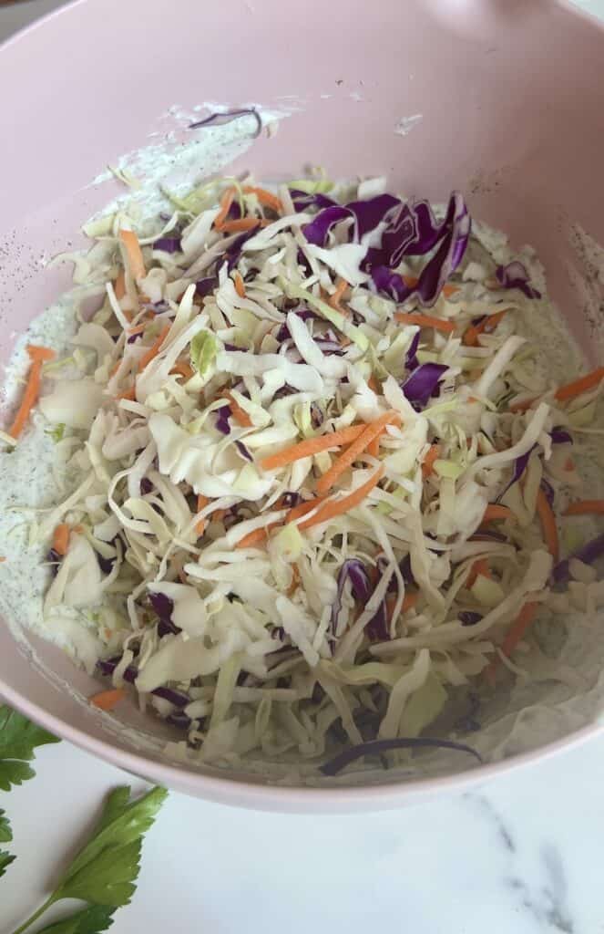 - 2 cups coleslaw mix or shredded cabbage (purple & green) and shredded carrots