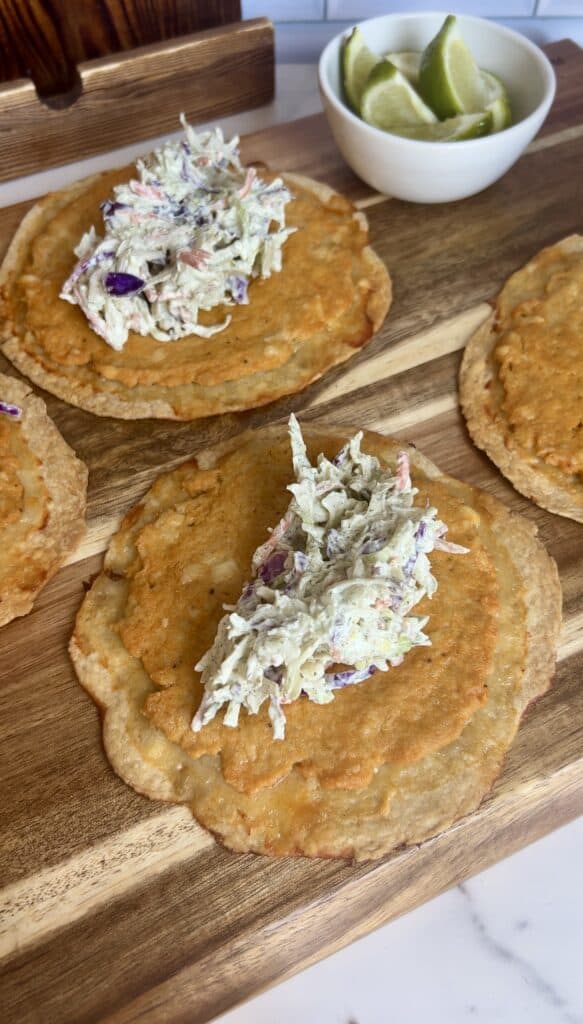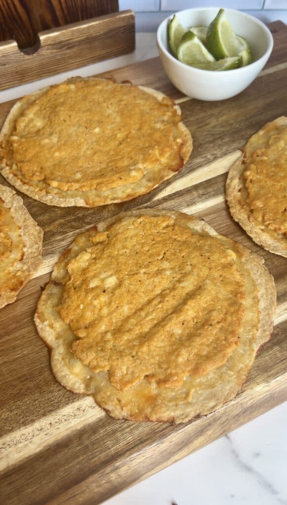 Sourdough, flour, or cassava tortillas all crisp beautifully. Smaller tortillas make great handheld tacos, while larger ones give you more room for toppings.