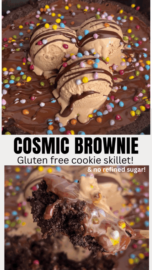 This Cosmic Brownie Cookie Skillet is gluten free, dairy free, and refined sugar free!