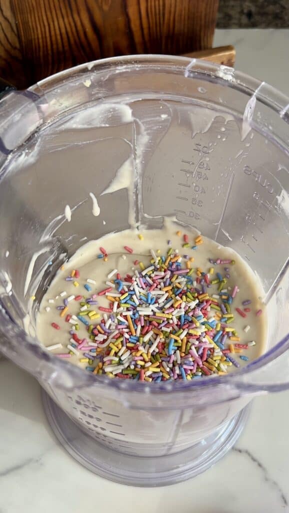 • Blend all popsicle ingredients, minus sprinkles, until smooth, scraping the sides as needed