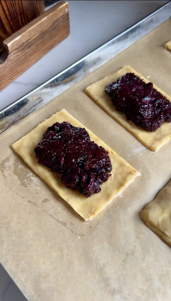- Dollop chia jam into the center of 5 pop tarts