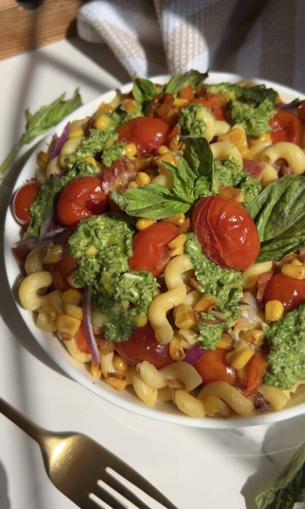 Why You’ll Love This Healthy Charred Corn & Pesto Pasta Salad
