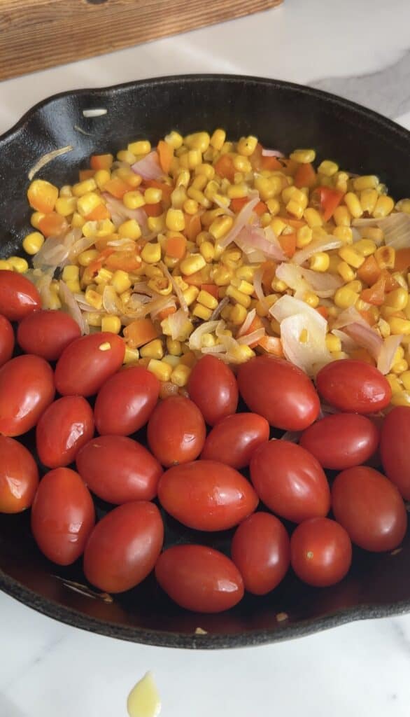 • Cook 3–4 minutes until skins blister but tomatoes stay whole.