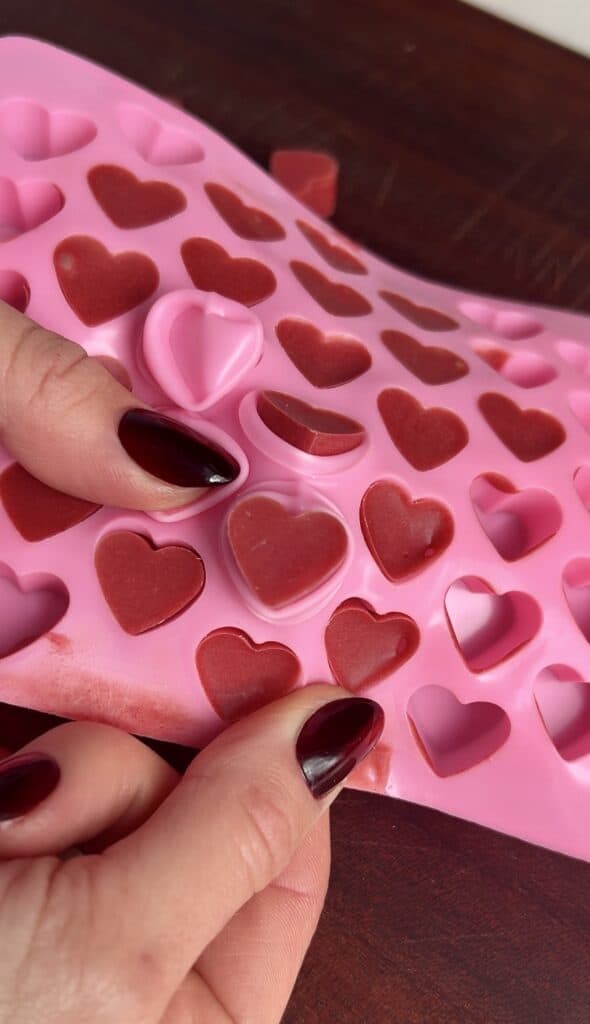 • Make chocolate hearts by melting white chocolate with coconut oil in 20 second intervals until smooth