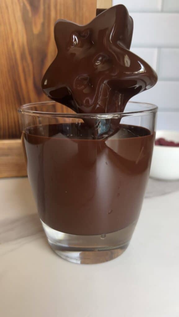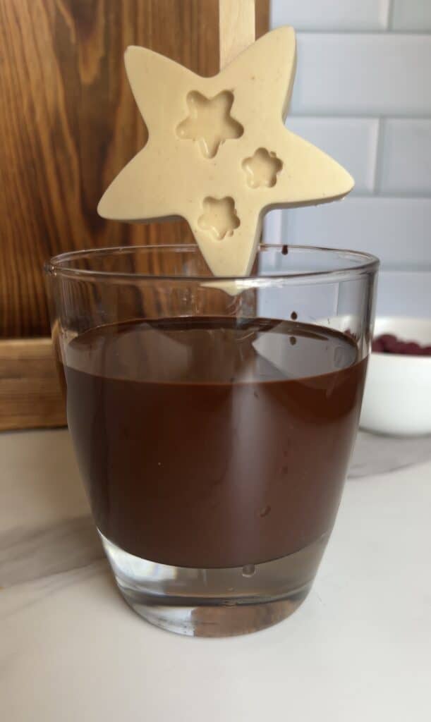 • Dip the stars: Remove frozen stars from molds and dip into the melted chocolate. Let excess drip off.