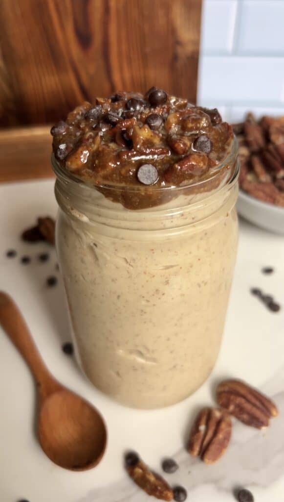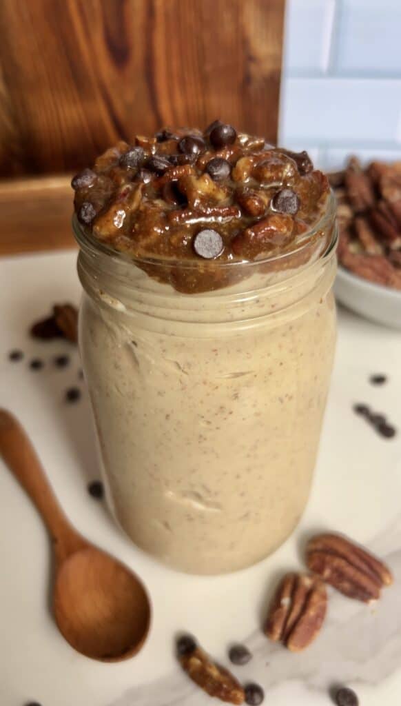 It’s made with nourishing ingredients, and the pecan pie compote is gooey and irresistibly delicious!