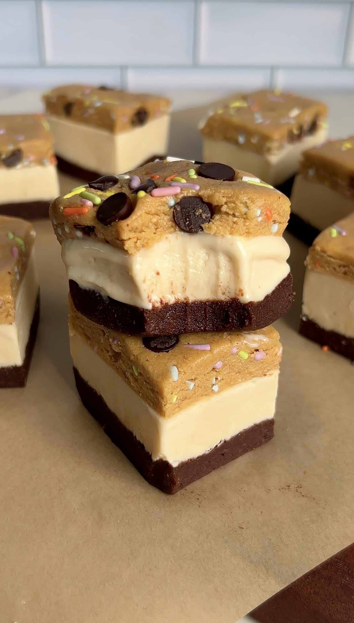 High Protein Cookie Dough Brownie Ice Cream Bars