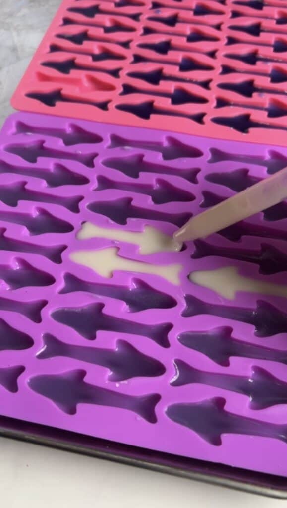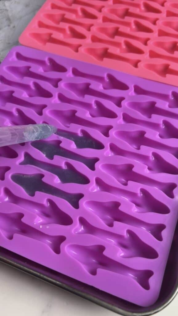 - Fill your shark molds 3/4 the way full with your droppers that come with your mold, and refrigerate