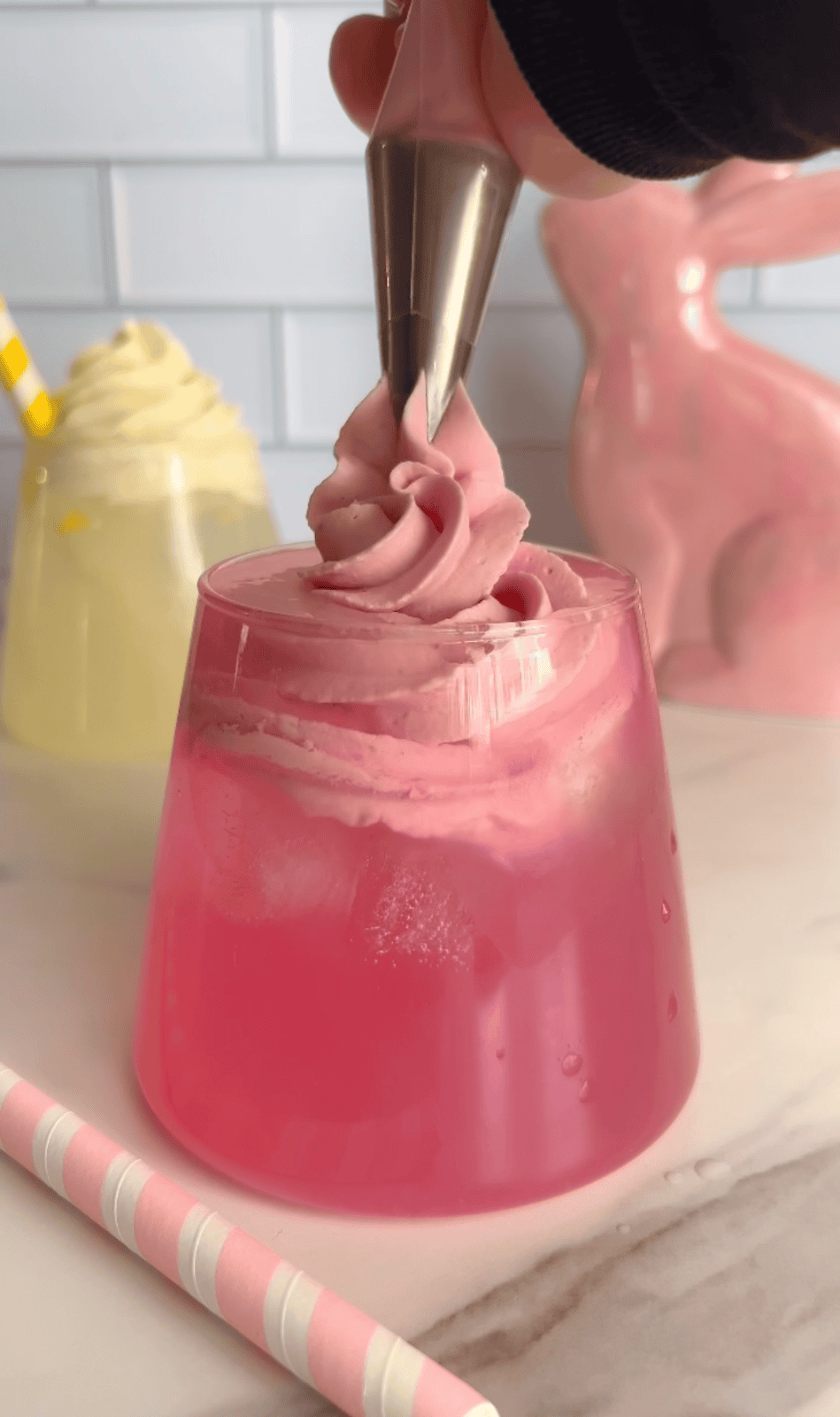 - Place whipped topping in a piping bag and layer overtop your lemonade and enjoy!