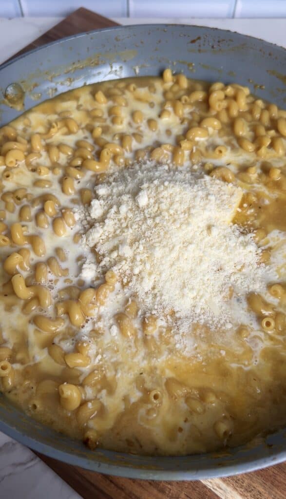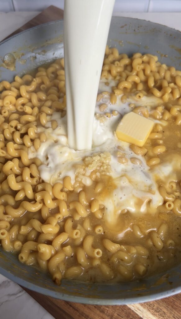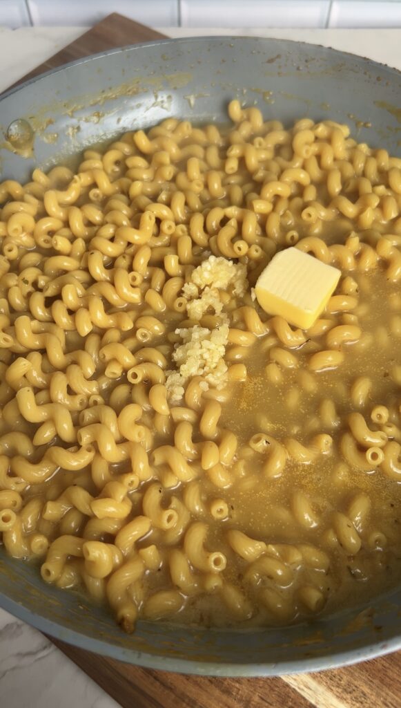 Yes — the cavatappi cooks directly in the broth, which creates a naturally creamy sauce and saves time on cleanup. It also helps the garlic parmesan flavor soak into the pasta.
