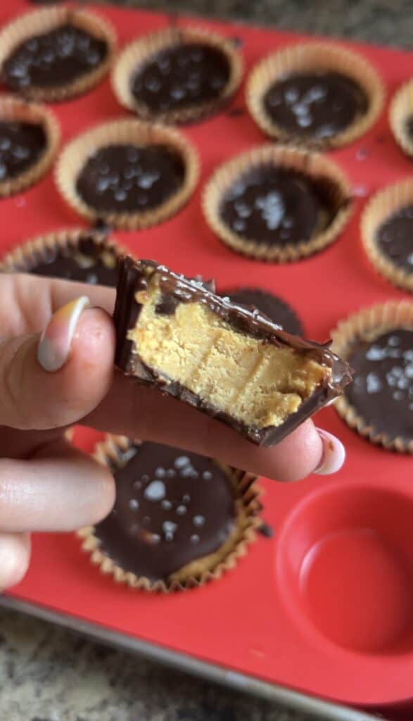 Homemade Peanut Butter Cups (makes 16 minis – feel free to half the recipe, or just keep a freezer stash!)