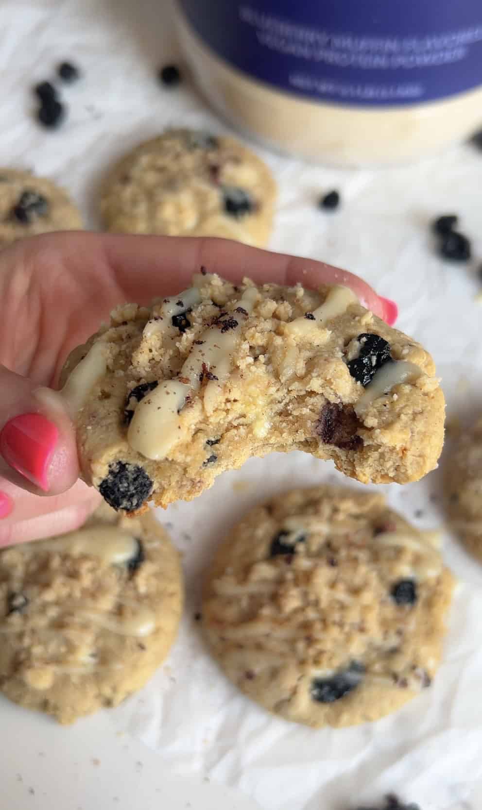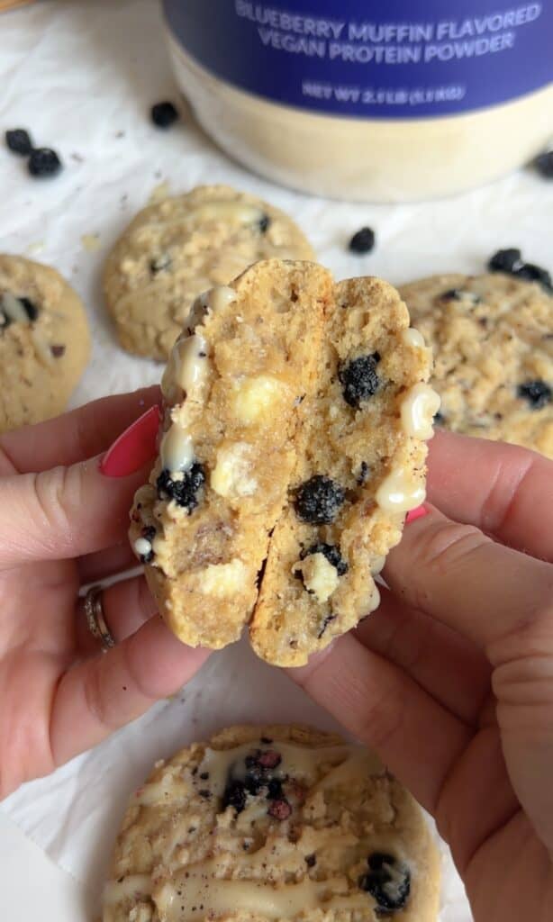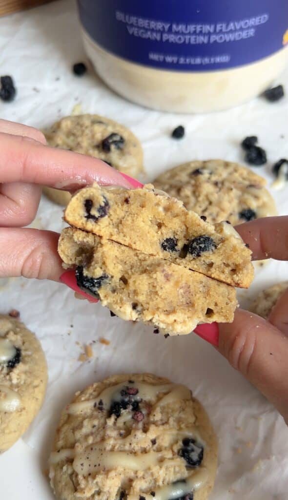 These cookies stay soft for days, pack in protein, and taste like a blueberry muffin and a cookie had the best possible baby.
