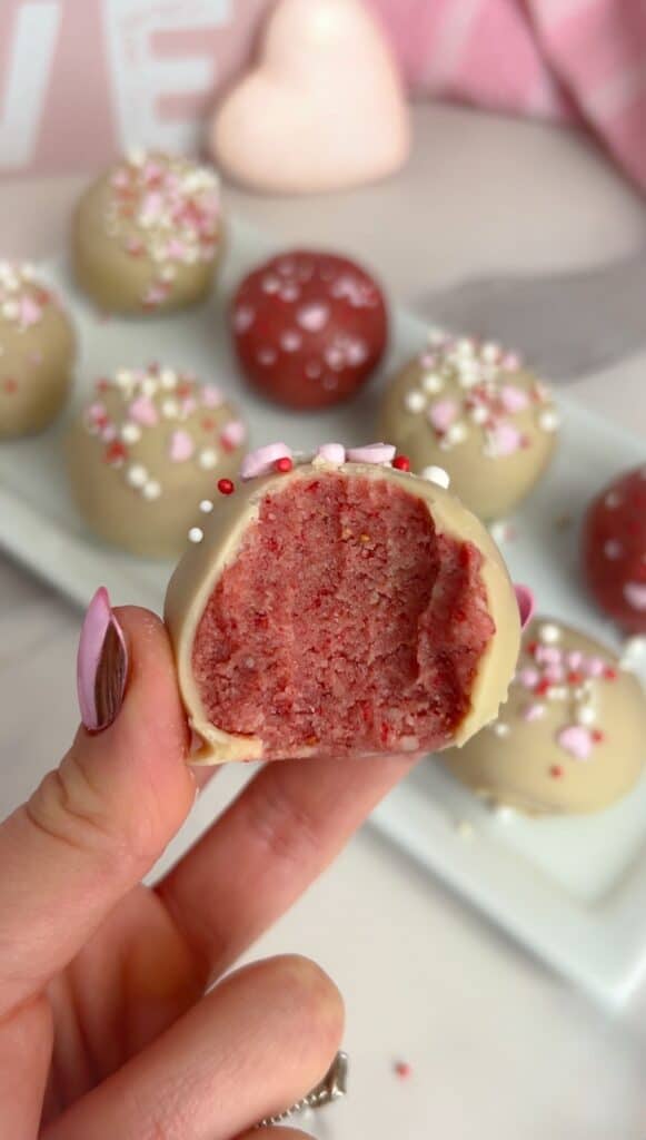 If you make these Strawberry Sugar Cookie Truffles I’d love to your thoughts in the comments below! Or tag me on social media so I can see your creations!