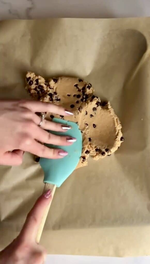 - Press onto baking sheet lined with parchment paper in desired shape and thickened level