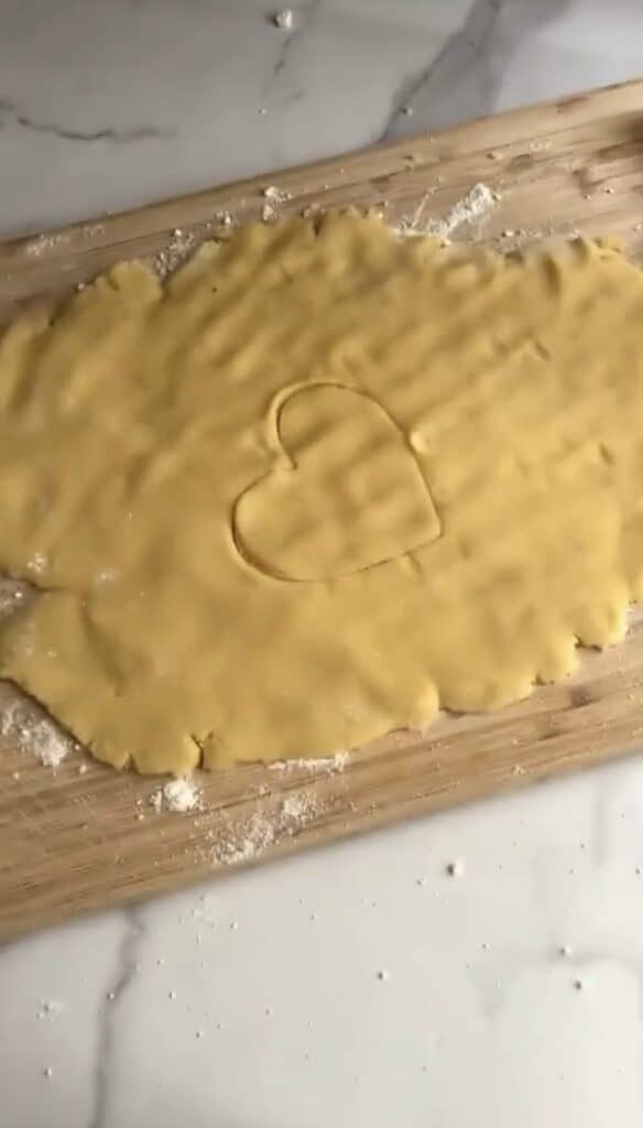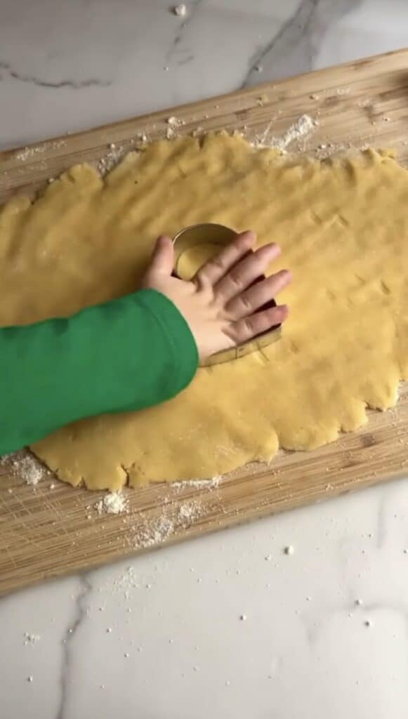 - 6. Use cookie cutters of choice to cut your dough, then place cookies on parchment paper lined baking sheet
